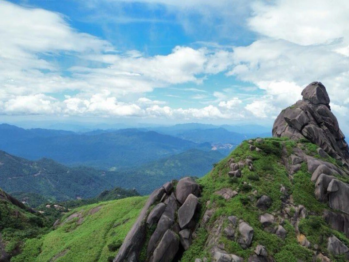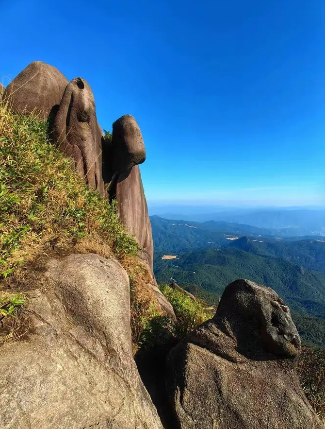 云髻山主峰:爬云髻山时,这儿的山路却野得很:前半段还是石阶,后半段直接是山石路,有的地方得手脚并用,石头上的青苔滑溜溜的,我死死抓着旁边的三角枫树枝才没摔下去。本地人说“这是广东唯一能爬到底顶的山”,果然爬半小时,就喘得比登香山鬼见愁时还厉害。