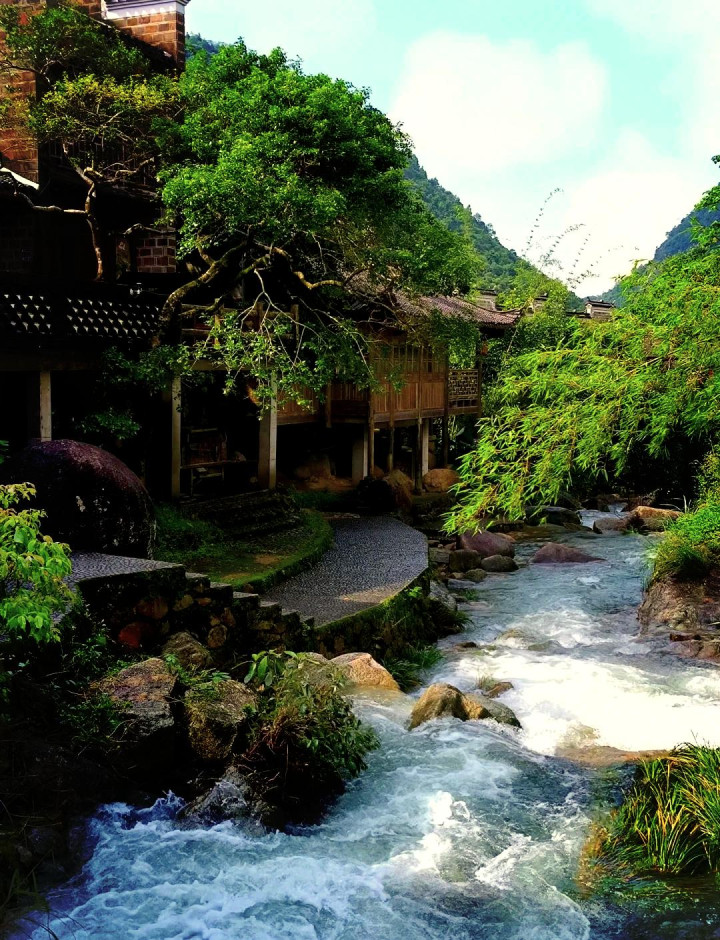 最妙的是峡谷深处的“听泉亭”,木亭盖在水潭边。坐在亭里,能听见水流的各种声音:近的“哗啦啦”,远的“轰隆隆”,还有风吹树叶的“沙沙”声,混在一起像自然的交响乐。我坐了半小时,连手机都忘了看,连心跳都跟着慢下来。