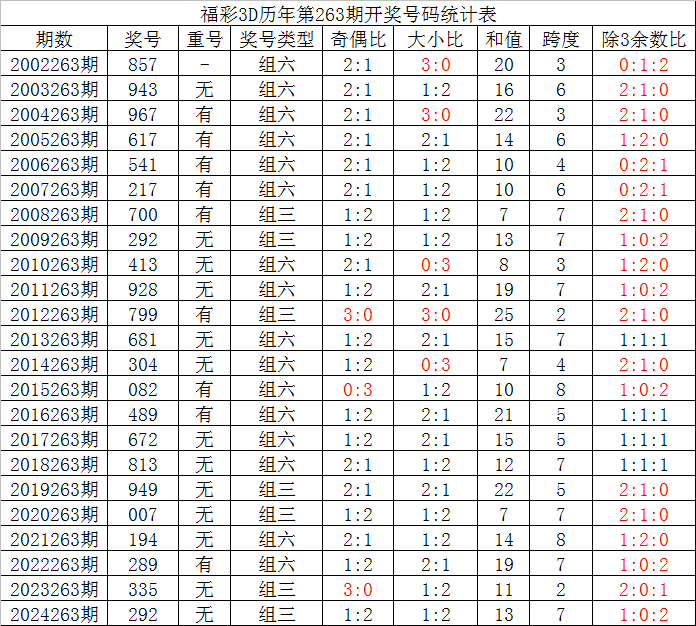 其中,组三号码开出7次,组六号码出现16次,组六号码目前连续2年没有出现,本期今年同期看好开出组六号码。