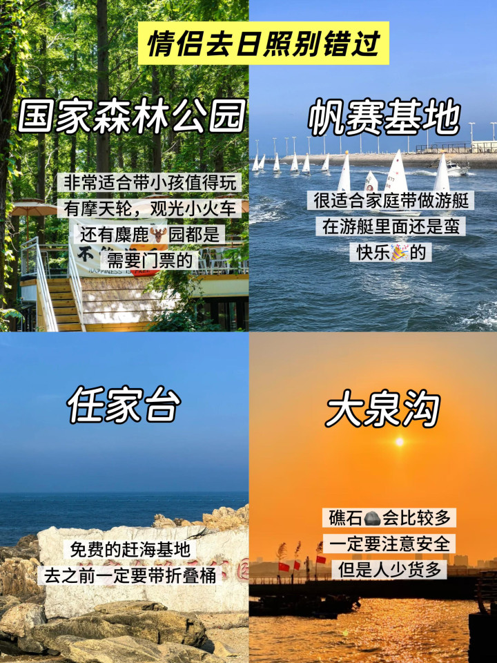 day2:桃花岛(上水咖啡巨好喝)—肥家庄(免费赶海基地)—任家台(可以赶海➕拍照📷)—森林公园(打卡好几个游玩项目)