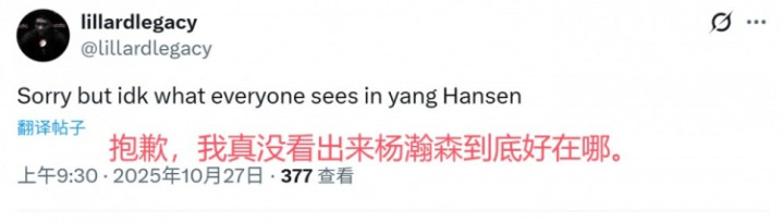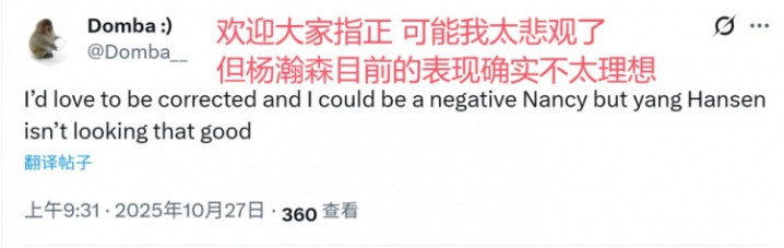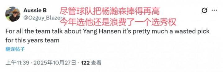 美网友: 杨瀚森目前表现不佳&没看出他好在哪 16号签选他浪费了
