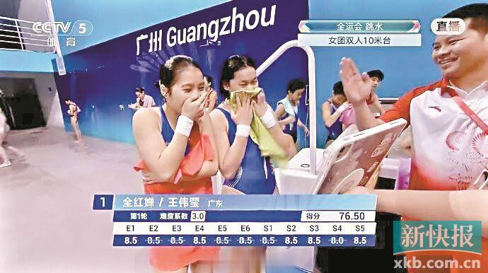 女子团体比赛的最后一项——双人10米跳台又是广东队的强势项目。已经拿过两届奥运会10米跳台冠军的全红婵搭档王伟莹出战,蒋林静和谢佩玲是另一组。