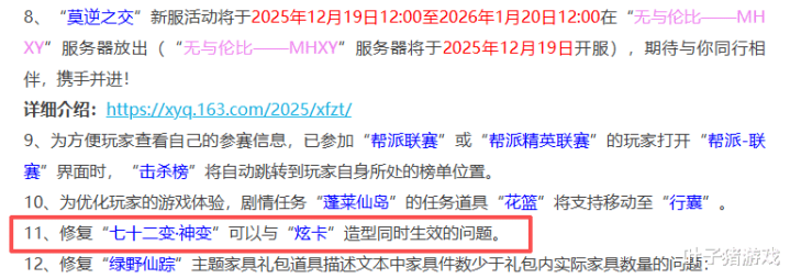 在本周的维护公告中,一项关于修复“七十二变·神变”与炫卡造型可同时生效问题的调整,引起了玩家广泛关注。
