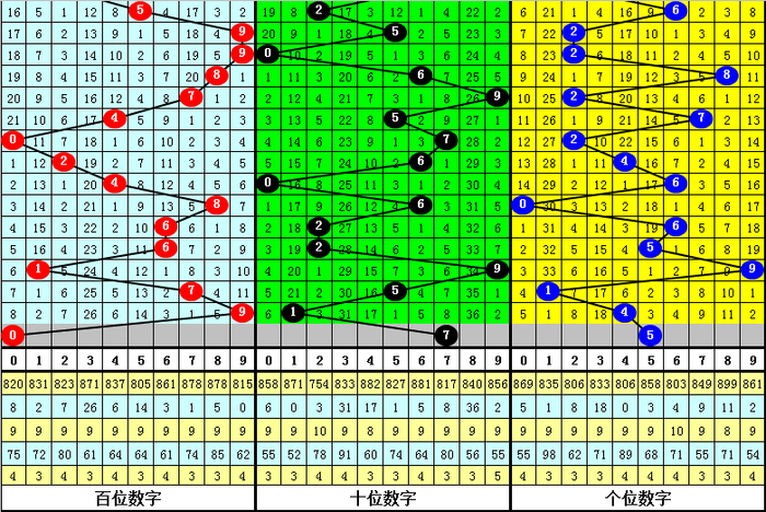 跨度分析:跨度最近10期012路比为3:4:3,012路跨度开出比例相当,前3期跨度分别遗漏2期、4期和1期,本期看好温冷跨度解冻,关注跨度7。