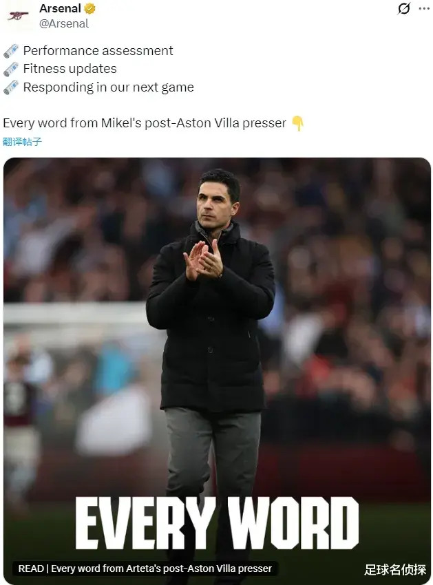 阿尔特塔出席了赛后新闻发布会,我们来看看阿森纳主帅的发言。